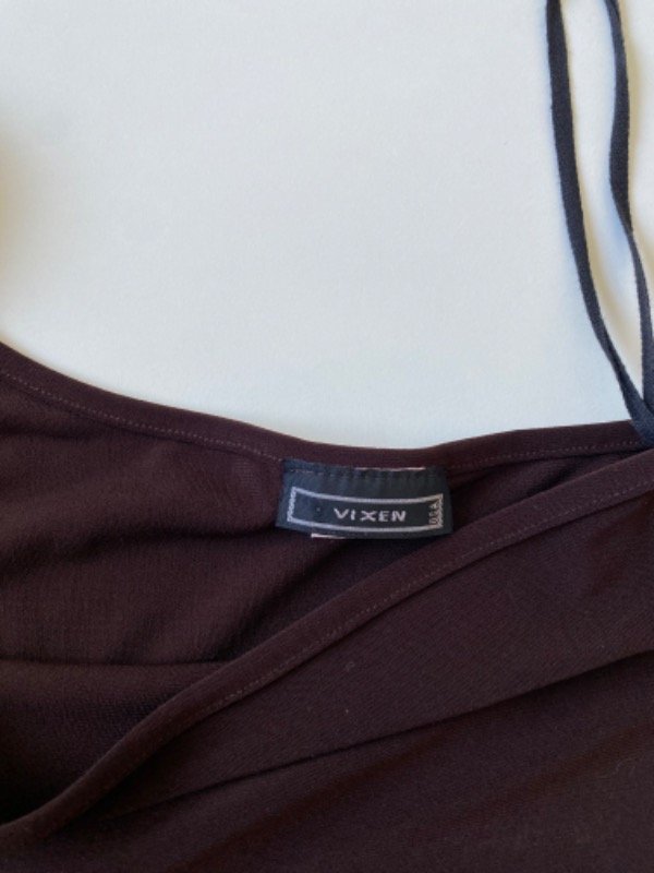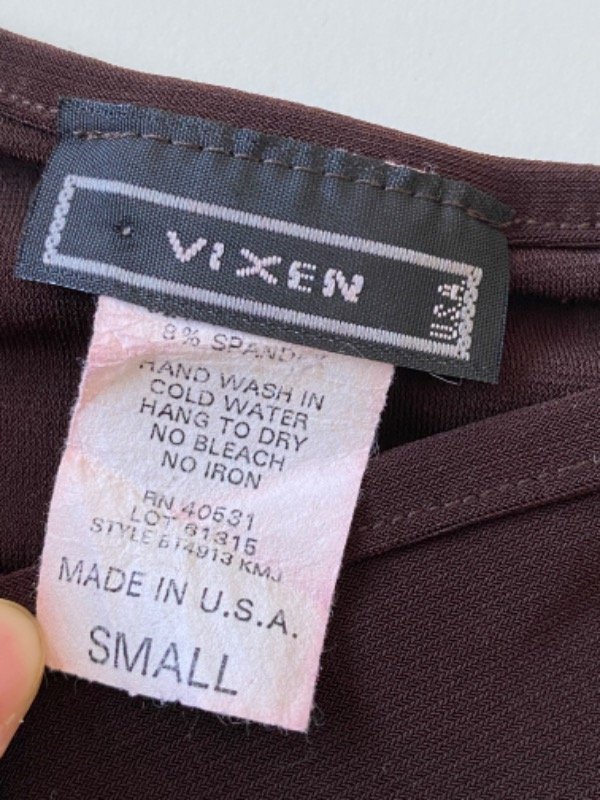Talle S. Hecho en USA. Poliester y spanex. Color marrón oscuro.